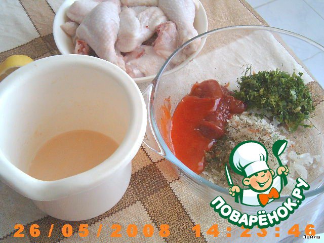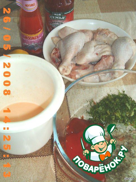 Курицу разделываем на части. Кетчуп у меня было 2 вида,
