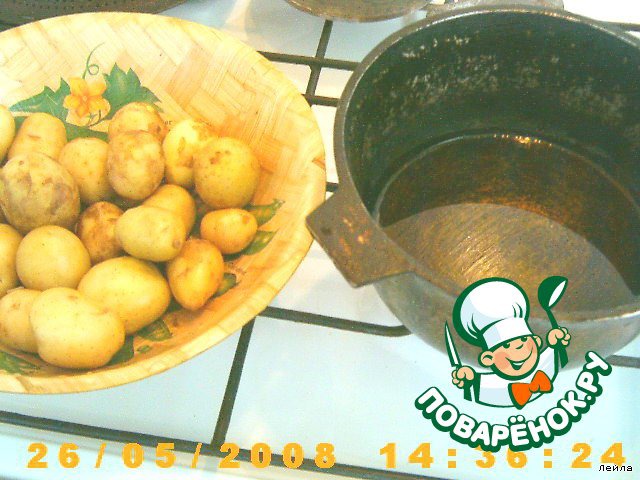 Так как у меня оставался маринад, после жарки картофеля я смешала (уже жаренный) картофель в этом маринаде и чуть-чуть снова прожарила.
