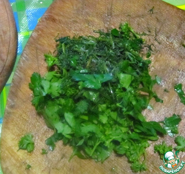 Зелень, я брала укроп и петрушку, мелко (или не мелко, как вам угодно) нарезать.