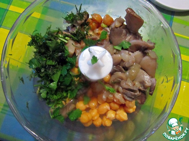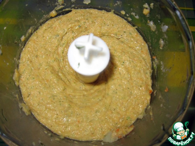 Измельчаем все до однородности, после чего добавляем яйцо и перемешиваем.