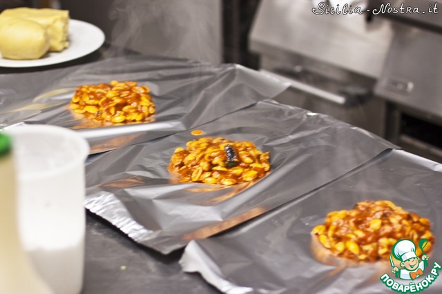 Разорвать фольгу на четыре одинаковых листа, распределить пасту по порциям.