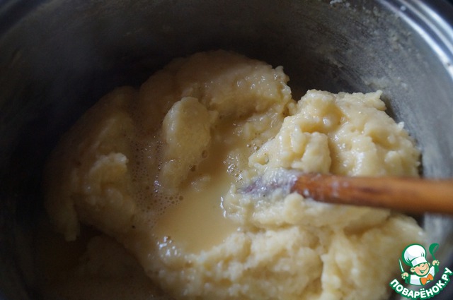 ... до образования однородной густой массы, которая должна отставать от краёв нашей кастрюли. Немного остудить.