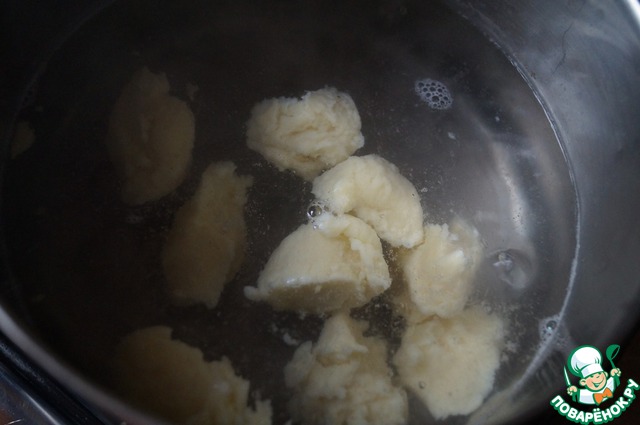 Приготовленное тесто берём чайной ложкой и опускаем в слегка подсоленный кипяток.