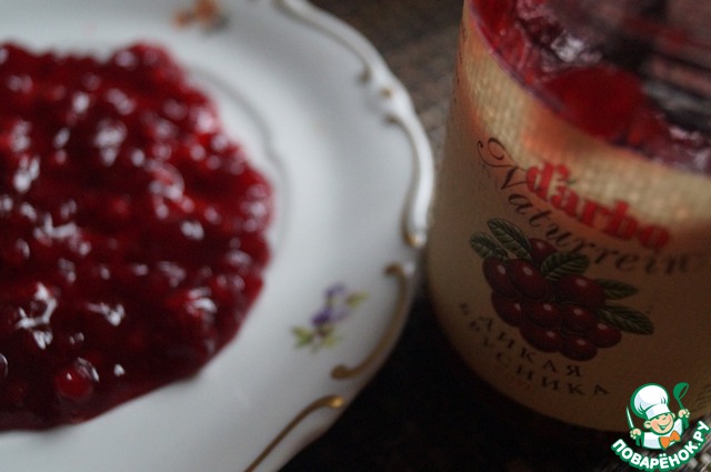 Наливаем соус D’arbo "Дикая брусника" на дно порционных тарелок.