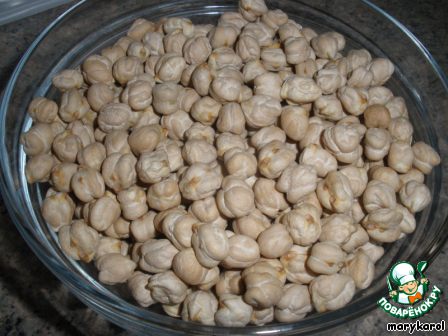 Замачиваем горох нут в достаточном количестве воды, т.к. он сильно набухает. Оставляем на ночь (можно 6-8 часов). Я беру "гигантский" светлый нут. Его вкус мне больше нравится.