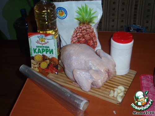 Фаршируем нашу птичку смесью ананаса, карри и чеснока.