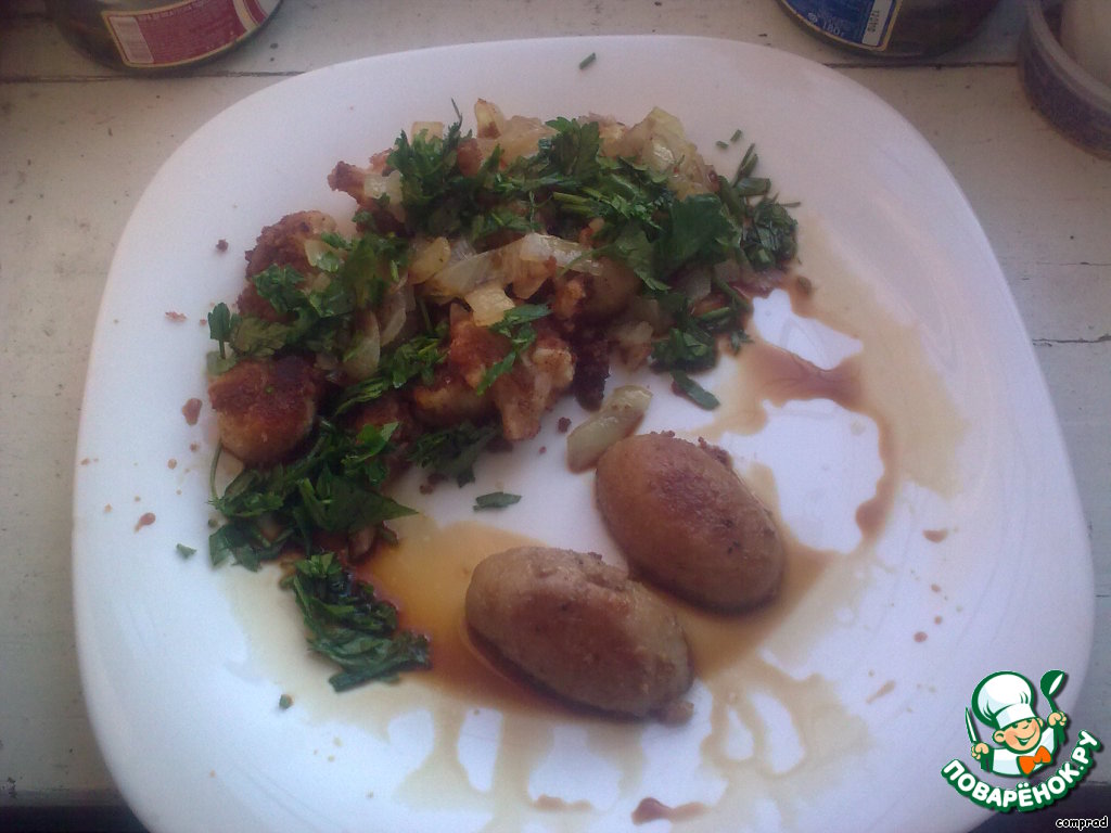 | Яйца барашка с жареной цветной капустой и пассерованным луком. Очень вкусное блюдо. Нежные на вкус яйца барашка с несложным гарниром. На гарнир может подойти рис или картошка. |