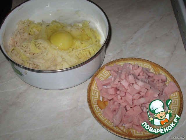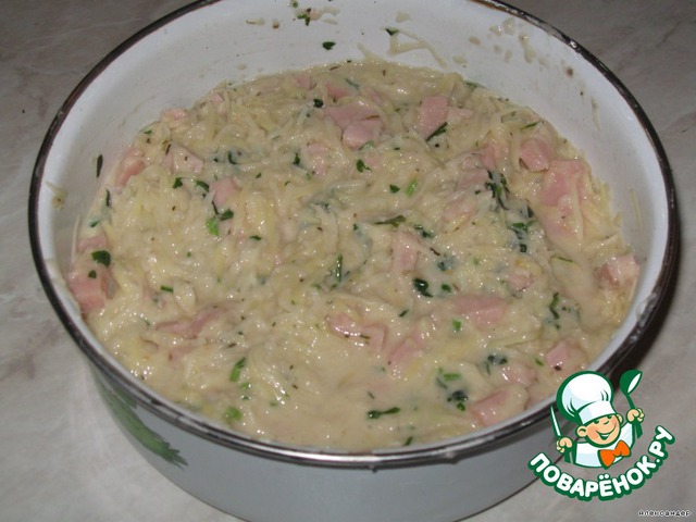 | Старый добрый рецепт с добавками из ветчины и зелени. |