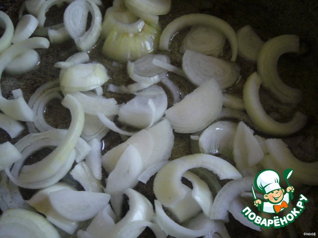 В освободившуюся сковороду выложить порезанный полукольцами лук,