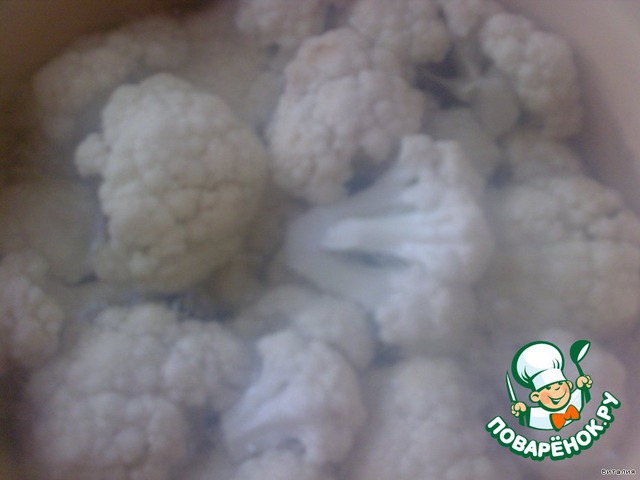 Цветную капусту освободить от кочерыжки и разделить на соцветия.