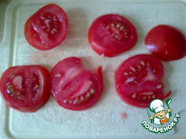 Помидор порезать кружочками.