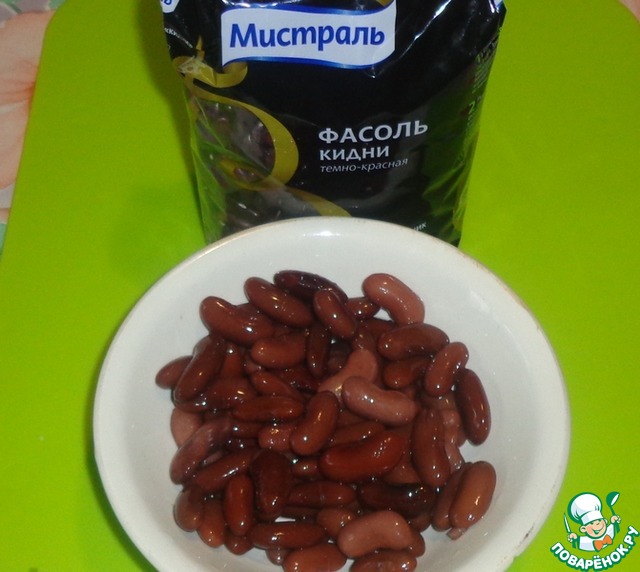 Фасоль ТМ "Мистраль" замочить на 4 часа в воде, а затем отварить до готовности.