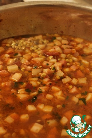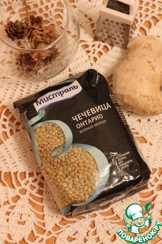 Затем добавляем промытую зеленую мелкую чечевицу ОНТАРИО ТМ "МИСТРАЛЬ". Ее не нужно замачивать, она сохраняет форму при варке, и быстро готовится.