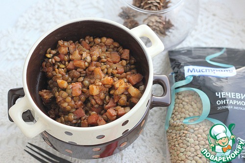 Тушеная чечевица с беконом, луком, имбирем