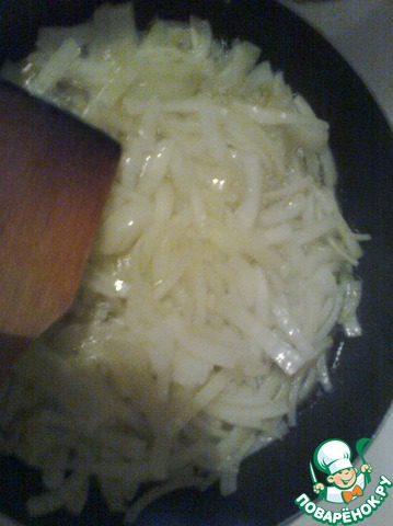 Разогреть сковороду с растительным маслом, выложить лук и пассеровать минуты 2.