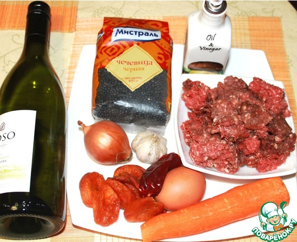 Подготовим все необходимые продукты. Я использовала черную чечевицу от Мистраль, т. к. она имеет неповторимый вкус, и сохраняет свою форму после варки, это придает большей пикантности и неповторимости блюду.