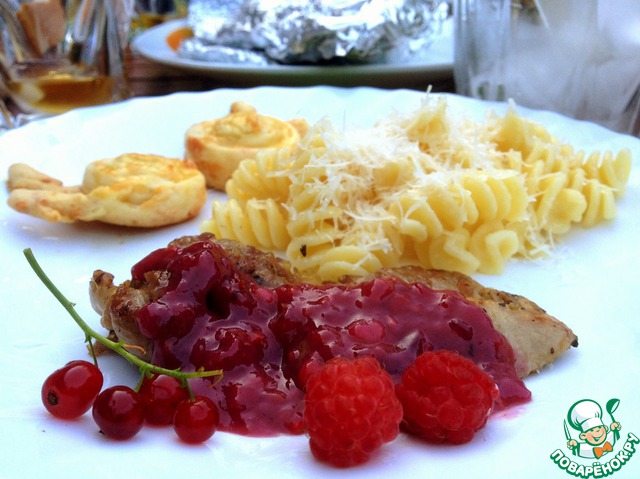 Подавать с любым гарниром на Ваш вкус, мясо получается изумительно сочное и нежное, ягодный соус волшебно ароматный! Очень вкусно, приятного аппетита!