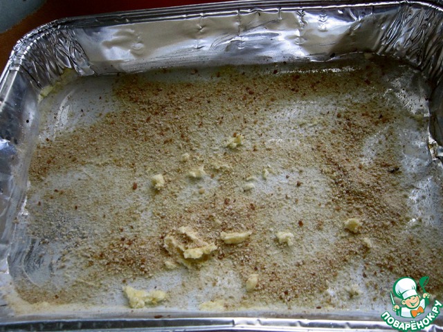 Форму смазать сливочным маслом и посыпать сухарями. Сыры натереть на терке.