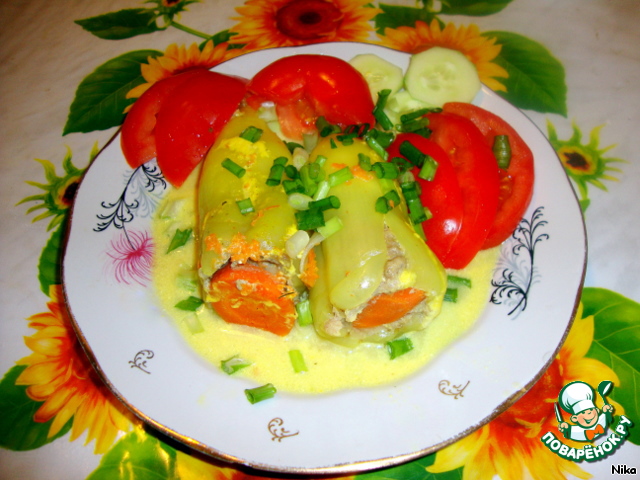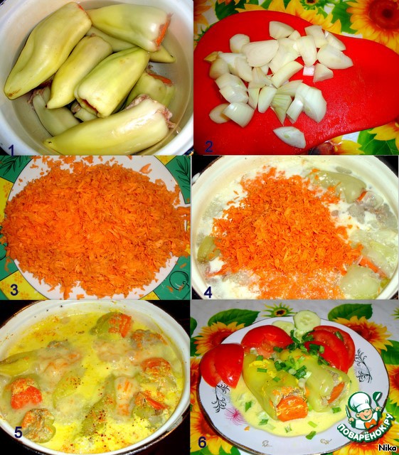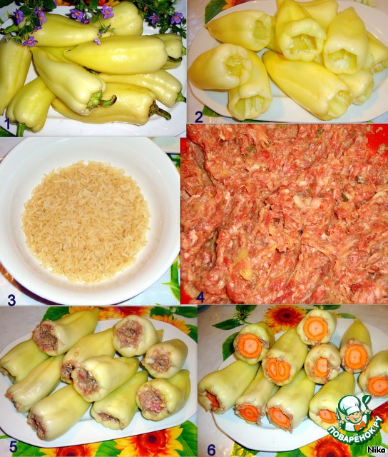 Так как перец узкий, фарш трудно положить вглубь... рис хорошо пролетит до самого дна, добавить фарш.