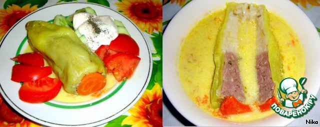 Так выглядит готовый перчик. Фарш отдельно и рис тоже