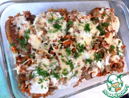 Драники по-чешски запеченные в духовке с фаршем и сыром готовы!