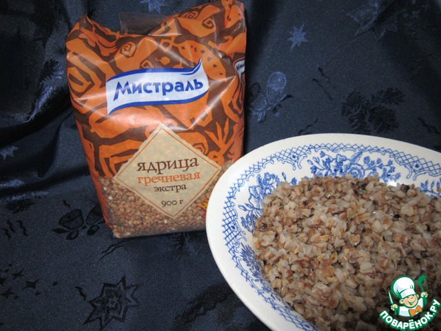 Для приготовления этого блюда использовала гречку от "Мистраль". Очень удобно-мыть и перебирать не надо! Из стакана гречки и двух стаканов воды сварить кашу.