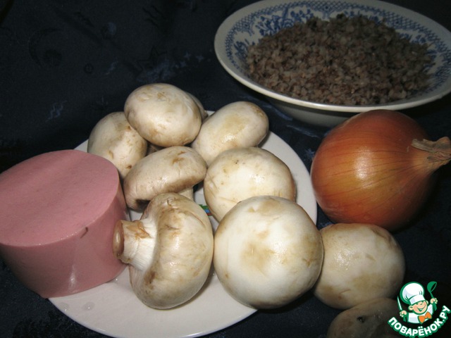 Гречка с грибами и ветчиной