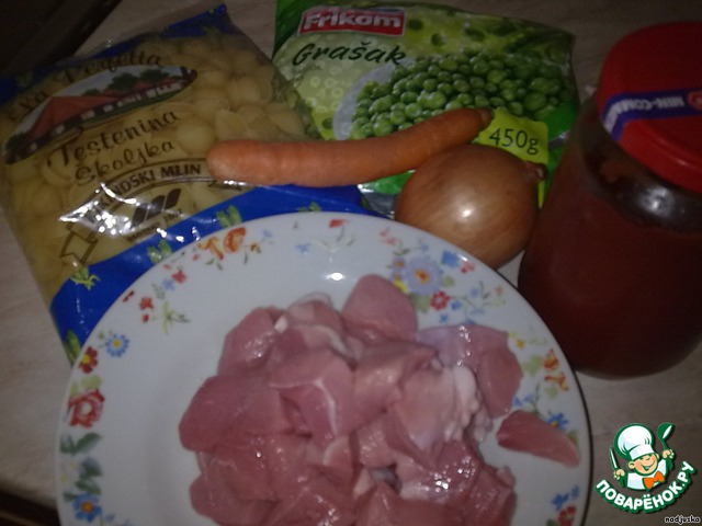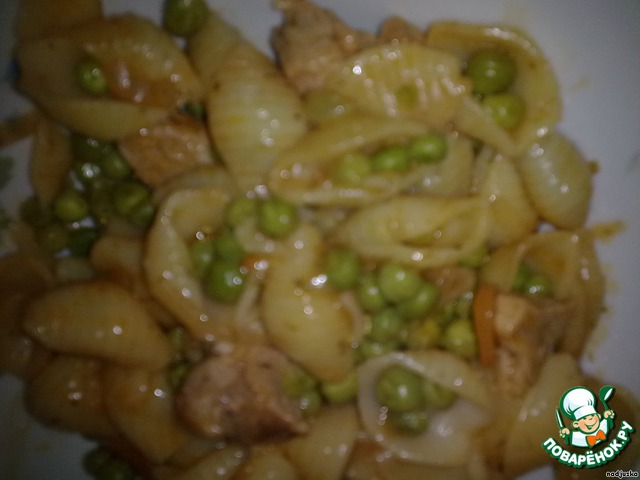 Ракушки с мясом и горошком