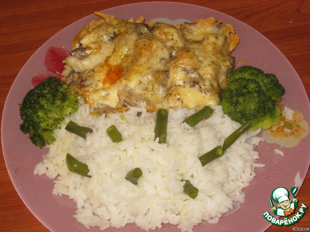 Гарнир можно использовать любой. У меня отварной рис и овощи на пару. Рыба получается сочной, а вкус необычным. Приятного аппетита