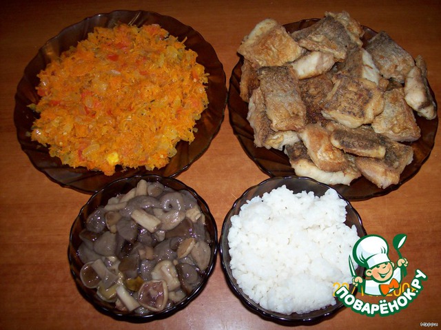 | Ароматная рыбка в компании риса, овощей и грибов. |
