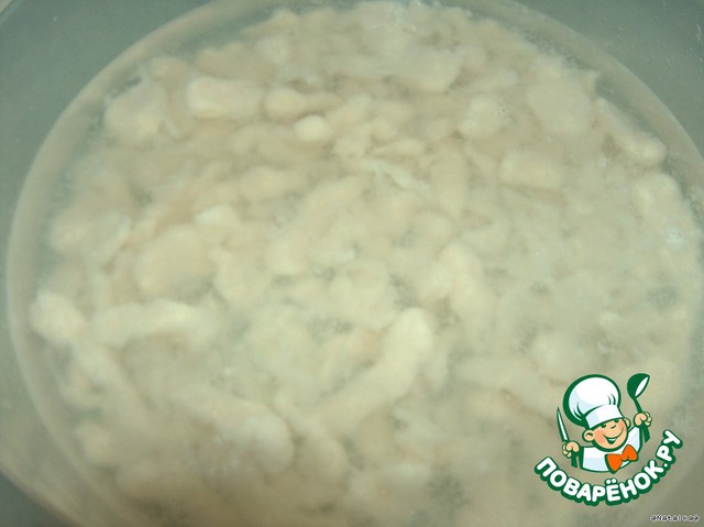 Когда всплывут (3 мин.), вытаскивать шумовкой, в холодную воду на пару минут.