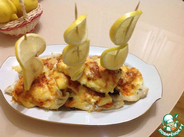 | Праздничная, вкусная рыбка. Люблю этот рецепт. Он всегда, очень выигрышно смотрится на столе. Не занимает много времени. Вкусно с белым сухим вином. |