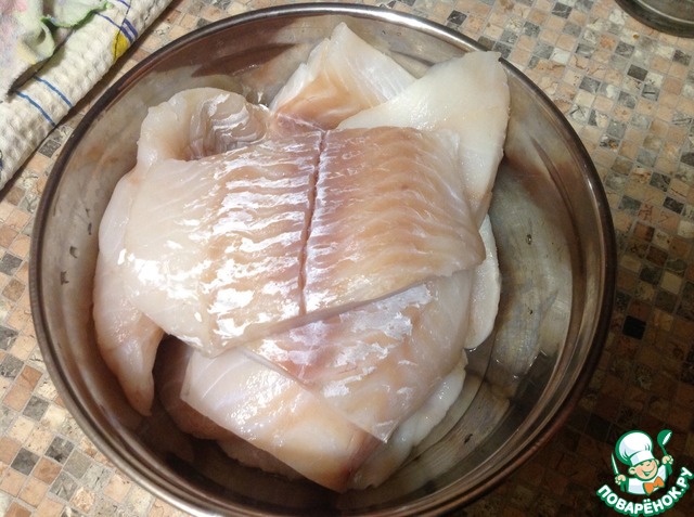 Филе разрезать на порционные куски.