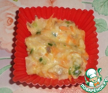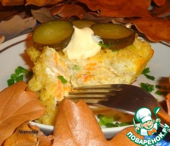 | Мини-запеканки, приготовленные в силиконовых формочках, из пшенной каши с рыбной начинкой. Блюдо к столу подается горячим. |