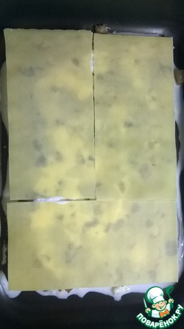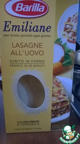 Еще важный момент - это паста для лазаньи. Покупая пасту, обратите внимание на способы ее приготовления. Необходимо покупать ту, что не требует предварительной варки. Если у Вас нет возможности купить пасту, ее очень легко приготовить. Я уже размещала рецепт приготовления такой пасты http://www.povarenok .ru/recipes/show/751 63/, поэтому не буду здесь повторяться.