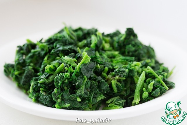 У крапивы оставить верхние листья. Если крапива молодая, то можно использовать и стебли. Крапиву промыть холодной водой. Вскипятить воду и бланшировать крапиву 1 минуту. Слить воду и быстро охладить крапиву в емкости с ледяной водой для сохранения цвета и нужной степени готовности. Получившуюся массу с силой отжать и порубить. Должно получиться около 1 большой горсти порубленной крапивы. Остальные ингредиенты даны из расчета на этот объем крапивной массы.