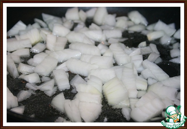 1. Нагреть масло и к нему добавить мелко нарезанный лук и обжарить минут 5.