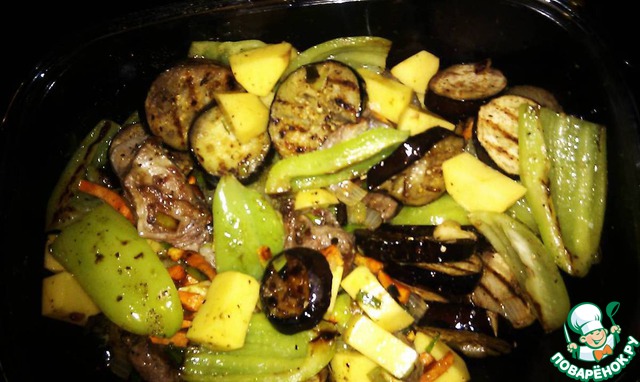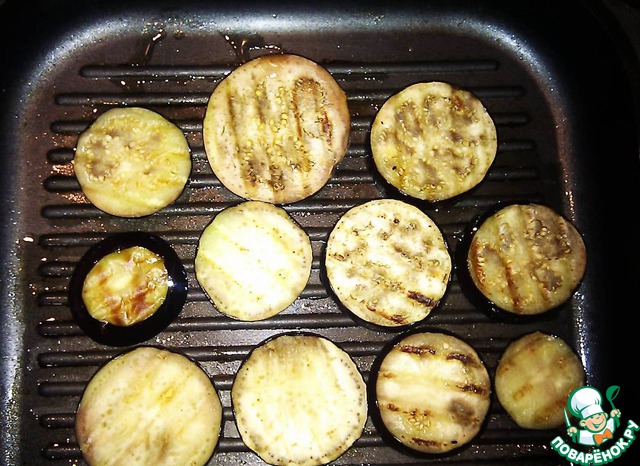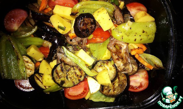 Перчик и баклажаны - на сковороде гриль (не принципиально).