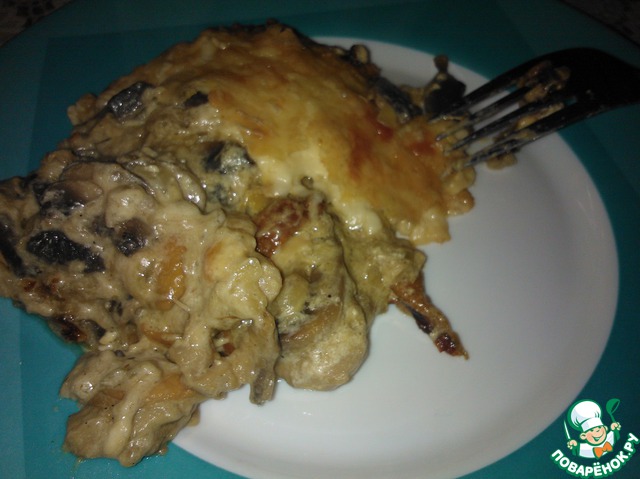 Поставить в разогретую духовку до полного растворения сыра и образования румяной корочки.