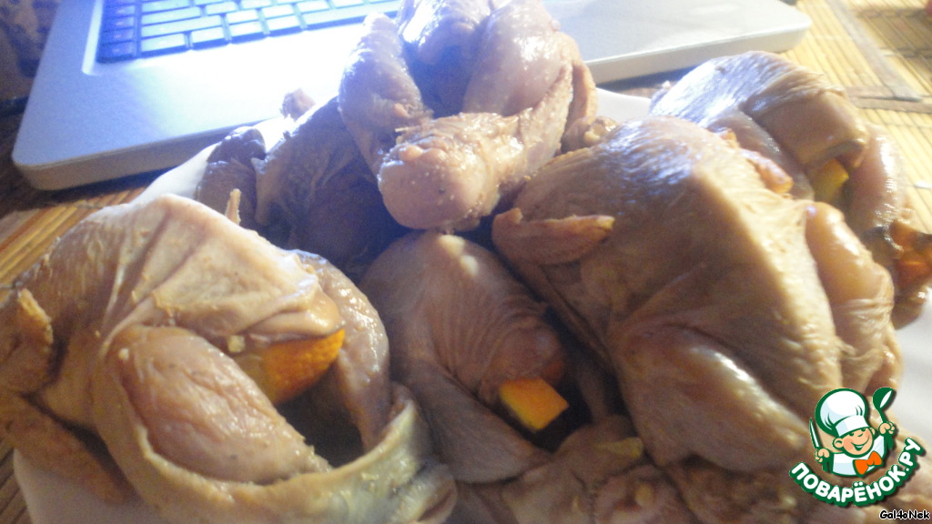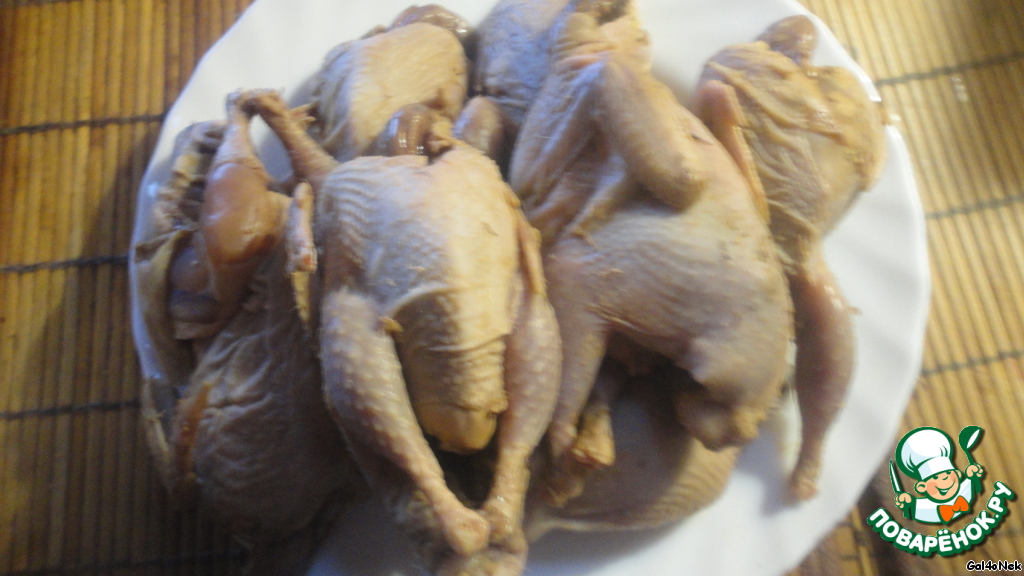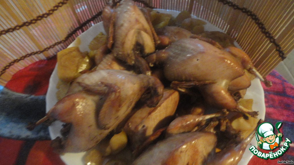 | Купила я тут перепелов по случаю. Дичь недешевая, потому редкая в нашем доме. Долго лопатила, и нет в поисках, как именно их приготовить, и в конце концов соединила идейки из нескольких рецептов в одном! Так что такого на сайте точно нет! |