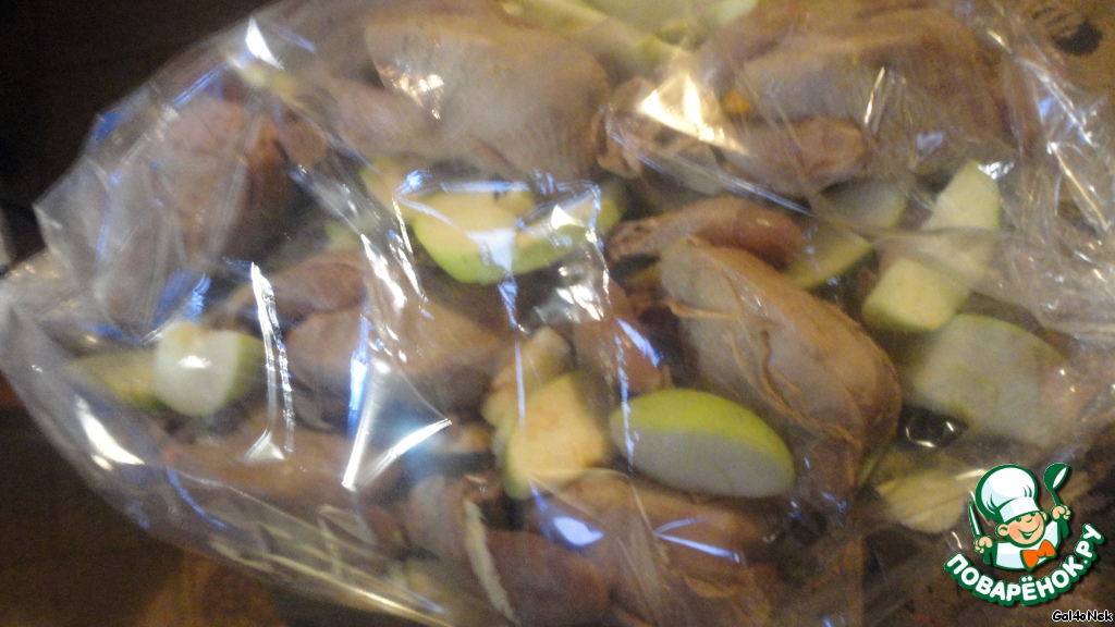 Выкладывааем перепелов в рукав и обкладываем их тыблочками (шутка).