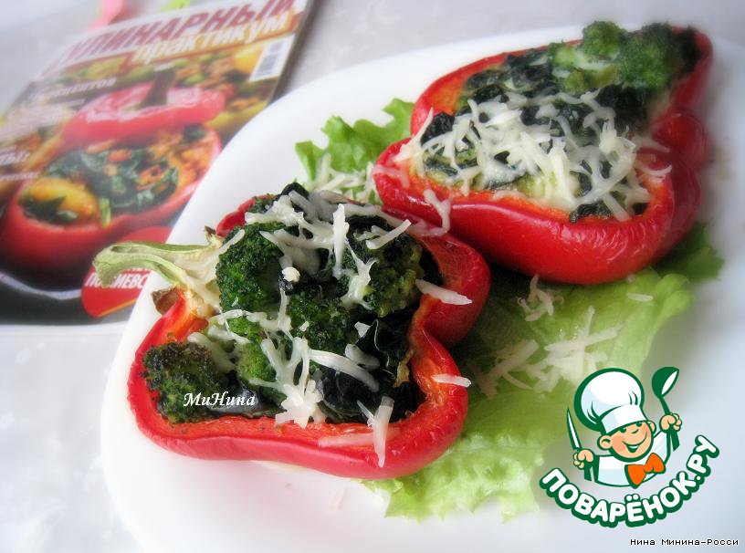 В 2 половинки перцев болгарских положить половину этой зеленой массы.