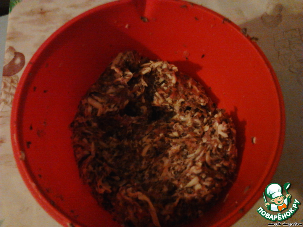 Сыр натираем на крупной терке, добавляем в фарш, грибы (я беру опята, уже заранее сваренные и остуженные) измельчаем (я делаю это с помощью блендера), добавляем все к фаршу с сыром и перемешиваем, добавляем перец черный молотый, соль по вкусу.