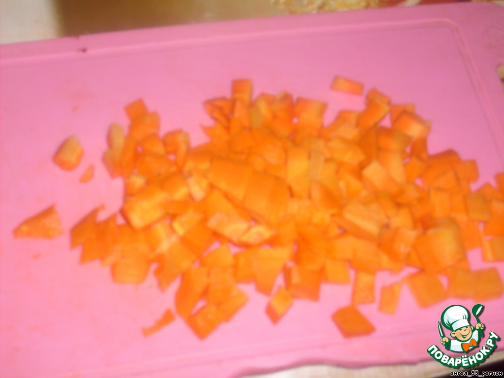 морковь нарезаем кубиками