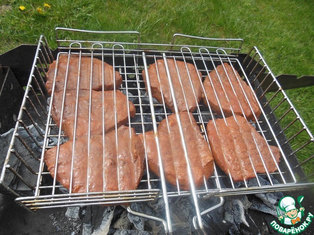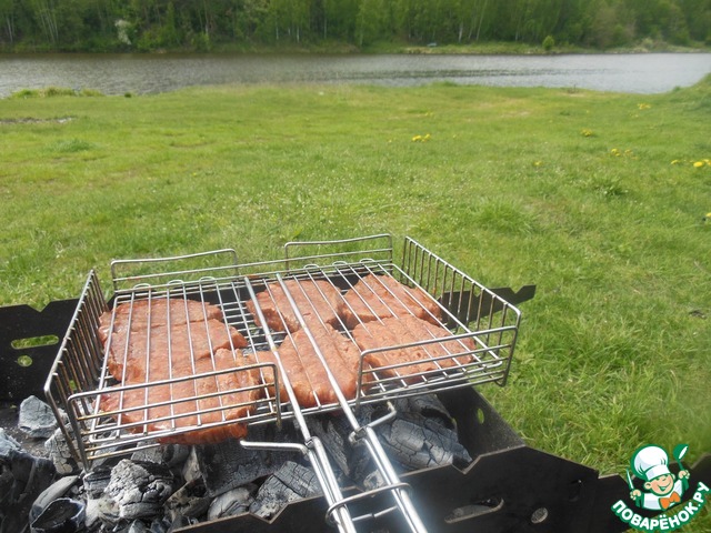 Выкладываем наше мясо на решётку. И жарим на углях с двух сторон до готовности.