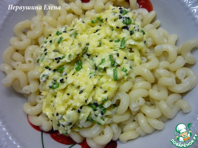 Тем временем макароны уже сварились. Слить воду и в еще горячие макароны добавить соус.