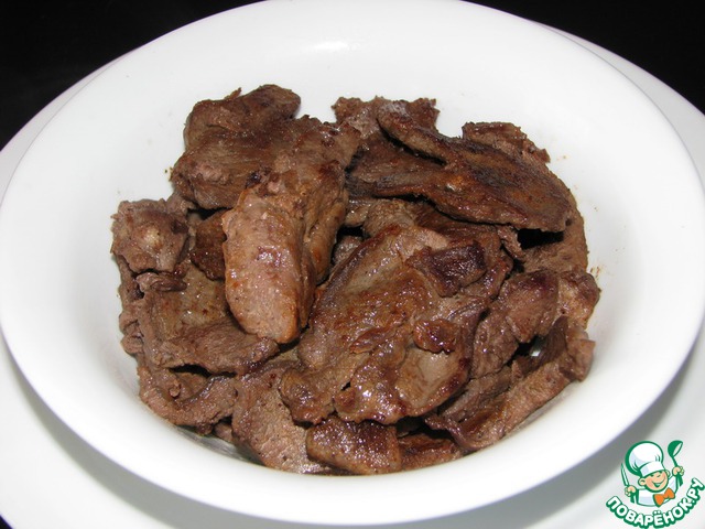 Режем мясо ПОПЕРЕК волокон. Пусть кусочки у нас получаются разными - не беда, все прожарятся!