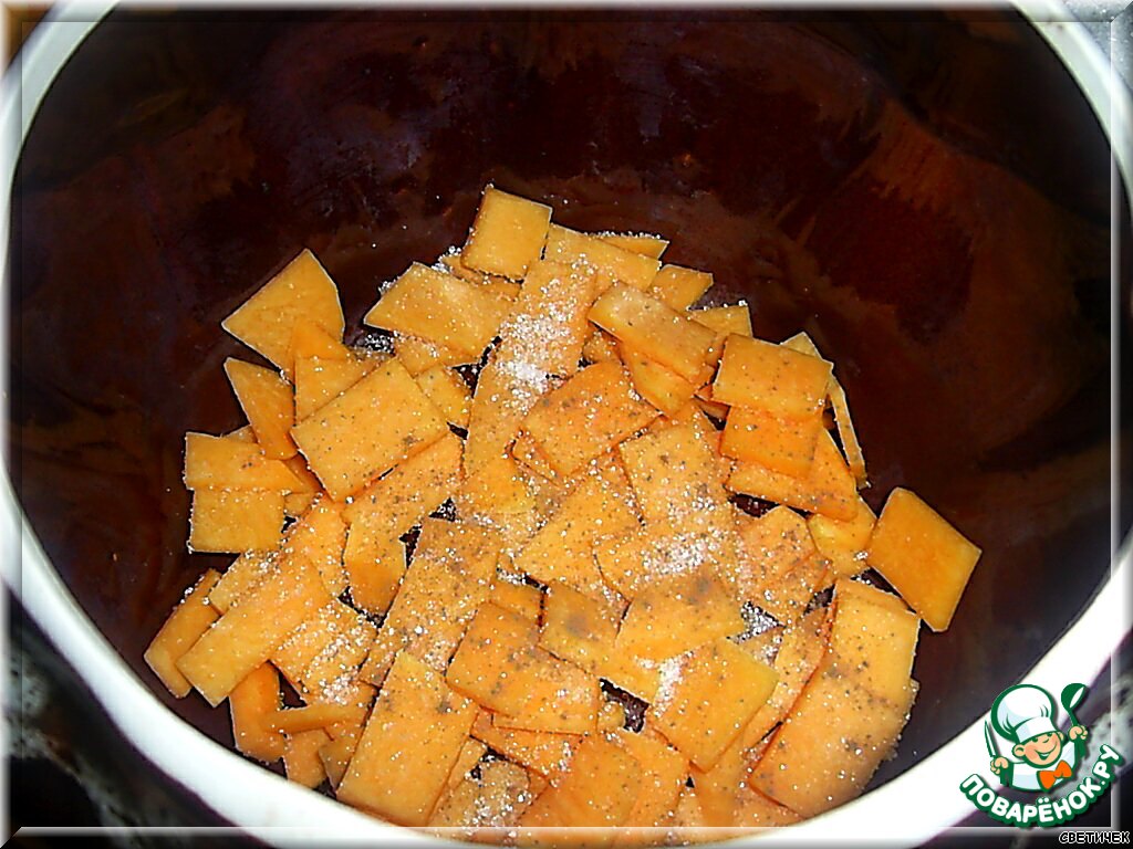 Тыкву очищаем, моем и нарезаем ломтиками.