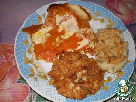 Получается вот такой замечательный гарнир к мясу и рыбе. У меня рыбные котлетки.