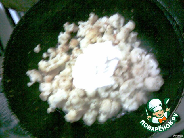 добавить сметану, соль, специи (я добавляла белый перец и базилик)